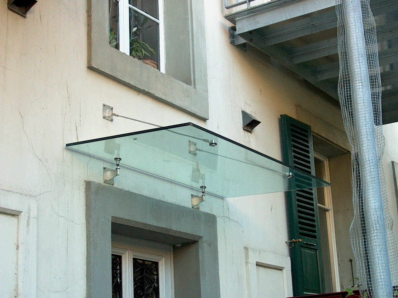 Einfache Verglasung über offenem Gang.
