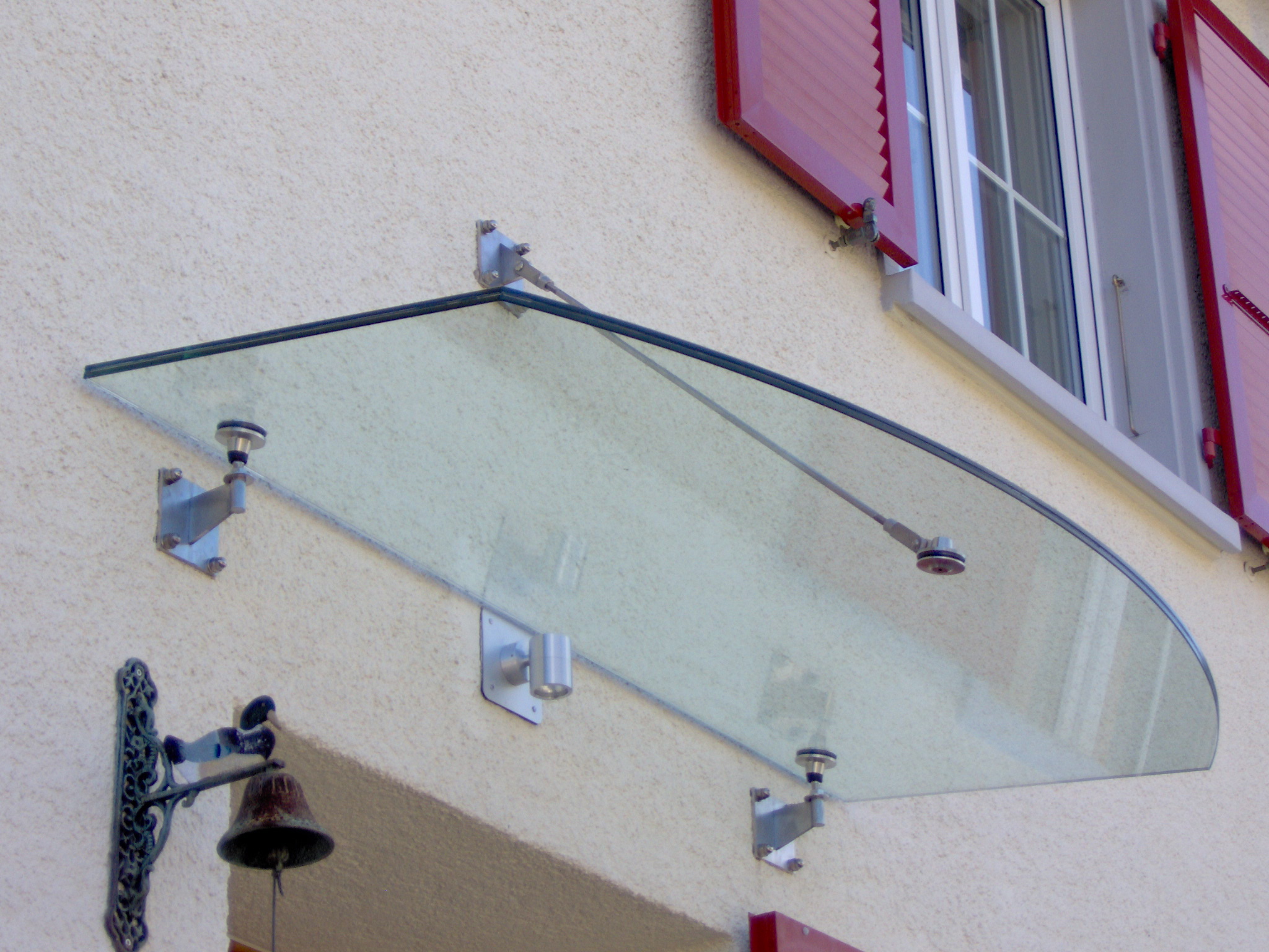 Vordachsystem SWISSROOF aus Glas und hochwertigem Edelstahl.