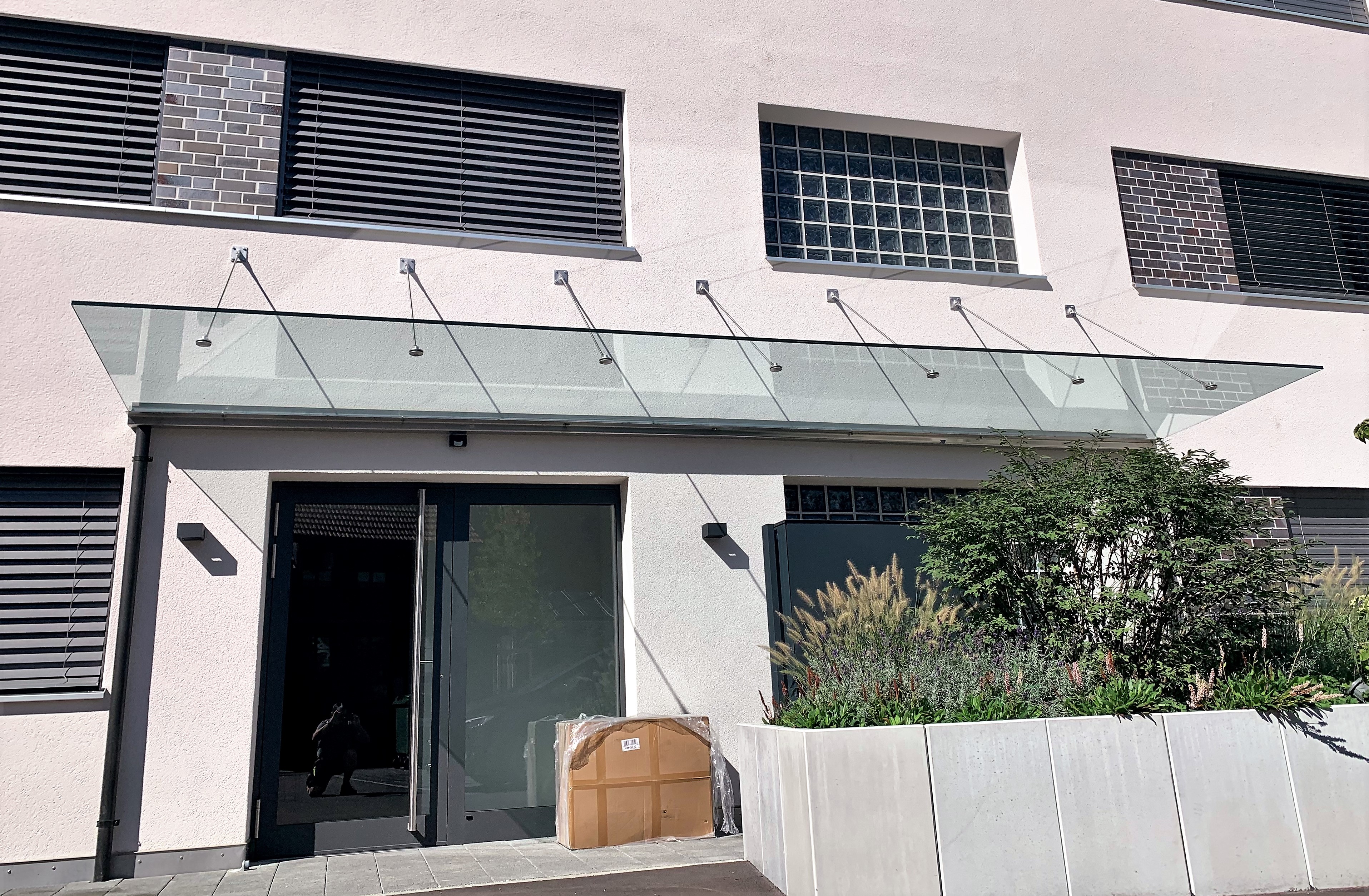 Vordächer aus Glas wirken leicht und filigran. Ein Vordach-System bietet Schutz vor Witterung und gibt ein Maximum an Sicherheit, ist elegant und frei schwebend.